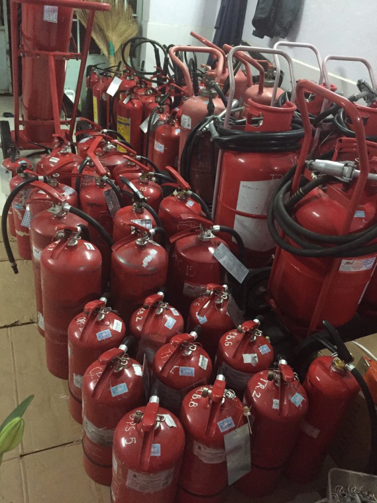 - Nạp bột chữa cháy mới, và bơm áp suất.