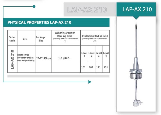 Thông Số Kỹ Thuật Kim Thu Sét Liva AX210